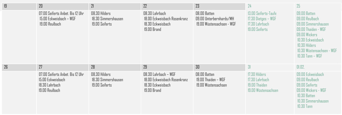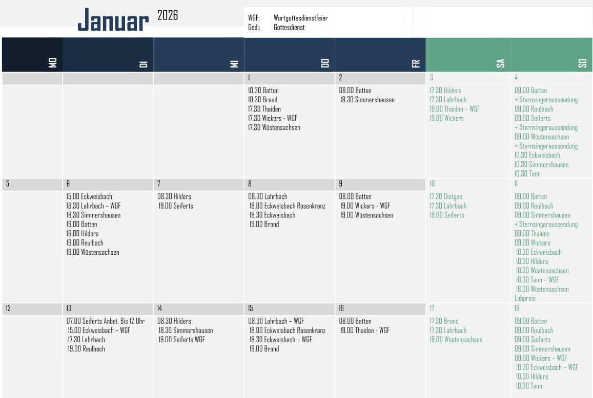 Der folgenden Aufstellung können Sie entnehmen, wann in den einzelnen Orten im Pastoralverbund Gottesdienste gefeiert werden.